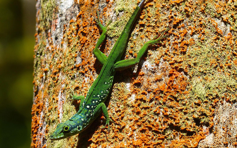 Parmi les créatures emblématiques de la Martinique, l’anoli, souvent appelé « zandoli » en créole, se distingue par sa présence discrète mais omniprésente. Ce petit lézard, aux couleurs et aux comportements fascinants, est un acteur essentiel de l’écosystème local. Ces lézards mesurent généralement entre 5 et 8 cm, sans compter leur longue queue. Le mâle se distingue par une gorge colorée appelée « fanon », qu’il déploie pour impressionner ses congénères ou attirer une partenaire. Actifs principalement le jour, les anolis se nourrissent d’insectes, contribuant ainsi à réguler les populations de nuisibles.