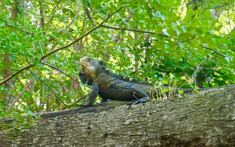 L'iguane de Martinique, ou Iguana delicatissima, est une espèce endémique de la Martinique. C'est un lézard de grande taille, qui peut mesurer jusqu'à 1,5 mètre de long, avec une couleur allant du vert au gris-olive. Cet iguane se nourrit principalement de végétaux, notamment de fruits, feuilles et fleurs. Il vit généralement dans les zones forestières et les côtes rocheuses de l'île.