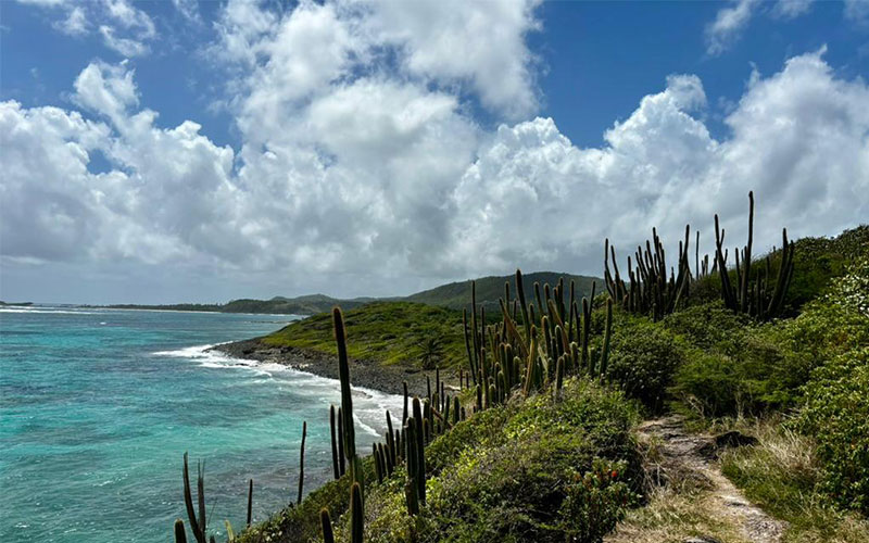 La randonnée de la Boucle du Vauclin est un parcours populaire situé dans le sud-est de la Martinique côté atlantique. Ce circuit de 9 à 10 km traverse des paysages variés, allant de la forêt tropicale aux plages sauvages, avec des vues imprenables sur l'océan. Il permet de découvrir la biodiversité locale, avec des sentiers parfois escarpés et des points de vue exceptionnels. Accessible à des randonneurs de niveau intermédiaire, la Boucle du Vauclin offre une belle immersion dans la nature martiniquaise, idéale pour ceux qui cherchent à allier sport et découverte. N'hésitez pas à prendre un petit bain de mer au Trou cochon (reconnaissable par sa forme de queue de cochon).