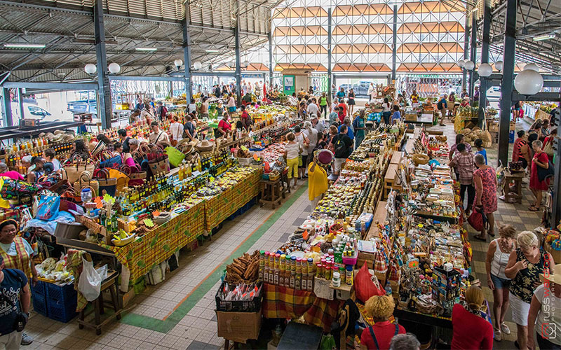 Le marché de Fort-de-France, situé en plein coeur de la capitale de la Martinique, est un lieu vibrant et coloré, incontournable pour découvrir la culture locale. Ouvert tous les jours, il propose une large variété de produits frais : fruits, légumes, épices, poissons, fleurs exotiques, ainsi que des produits artisanaux et des souvenirs. C’est aussi un excellent endroit pour goûter aux spécialités créoles, comme les accras, les pâtés créoles ou encore le rhum. Le marché, avec son architecture traditionnelle, est un véritable centre de vie où se croisent habitants et visiteurs, offrant une immersion authentique dans la culture martiniquaise. Parmis tous les fruits locaux, vous trouverez bien sûr :